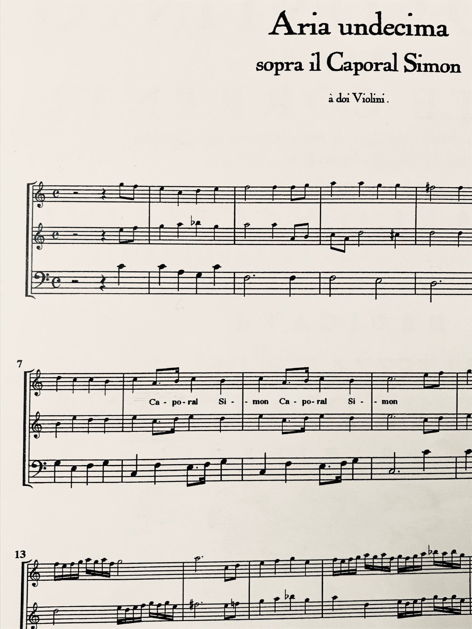 ウッチェリーニ:アリア11番sopra il Caporal Simon(2本のヴァイオリン)Op.4